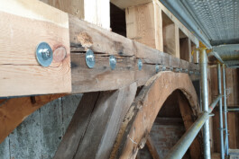 Das denkmalgeschützte, 1794/95 errichtete Schloss auf der Pfaueninsel wurde instandgesetzt. Die Maßnahmen konzentrierten sich im Wesentlichen auf die zu sanierende bzw. erneuernde Hülle des Bauwerks, welche in ihrer äußeren Gestalt an eine gemauerte Burg anmutet, tatsächlich aber in Fachwerkbauweise aus Holz ausgeführt und mit Eichenholzbrettern verschalt wurde. Eine besondere statische Herausforderung war die Restaurierung und Reparatur der historischen Gusseisenbrücke mit Glockengeläut zwischen den beiden Türmen.